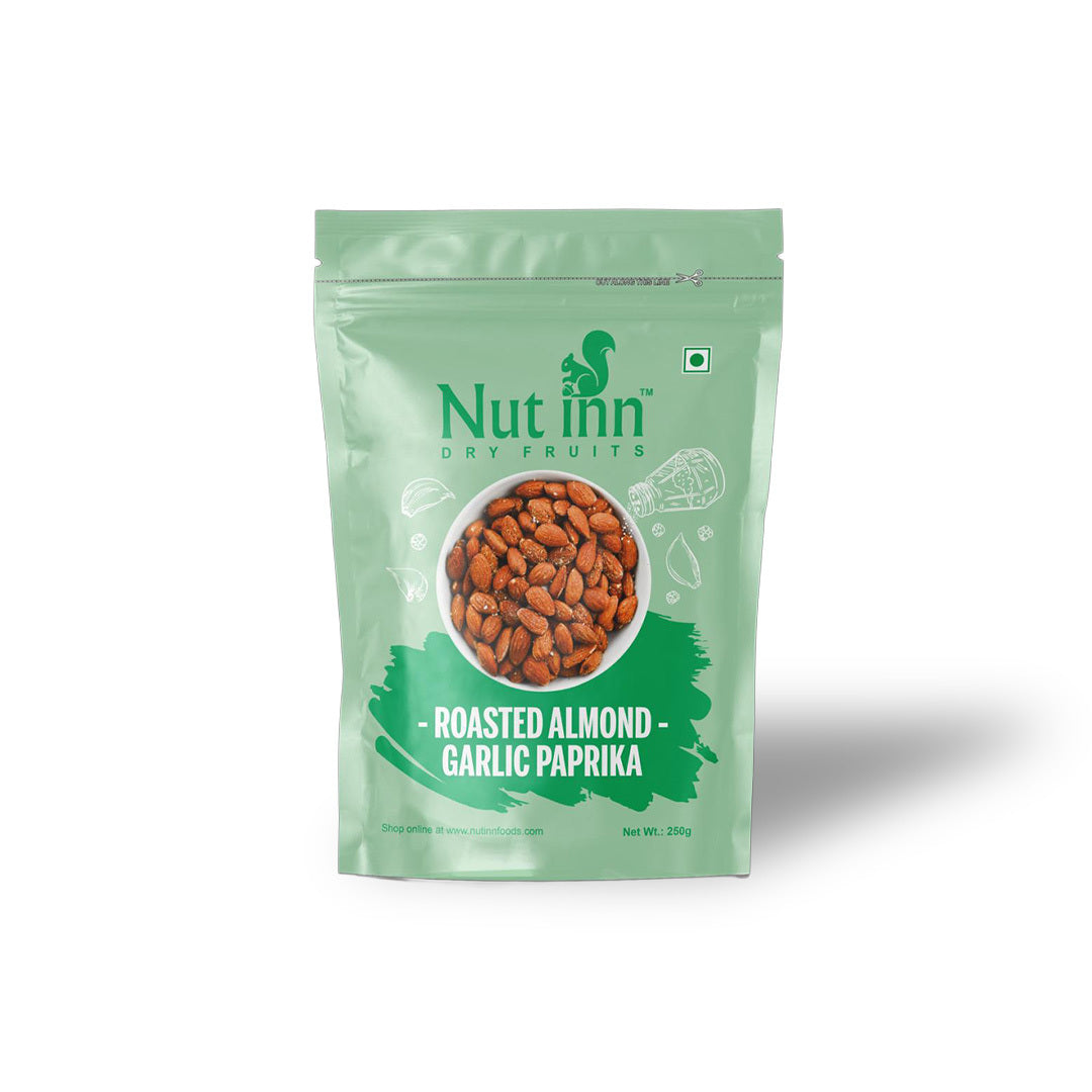 Nut-Inn's Roasted Almonds give you a gourmet snacking delight with a flavor explosion. Flavored with fragrant garlic and a touch of paprika, the roasted almonds are crunchy, delicious, and irresistibly so, a healthy snack with an added spicy kick.