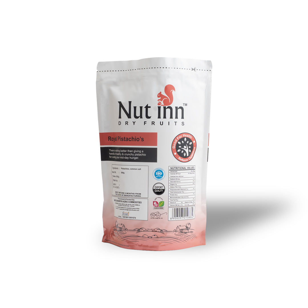 Nut-Inn's Royal Pistachios are handpicked for their outstanding size, natural crunch, and rich taste. A healthy source of protein and antioxidants, these superior pistachios are ideal for healthy eating, gifting, or to add that touch of luxury to your festivities.